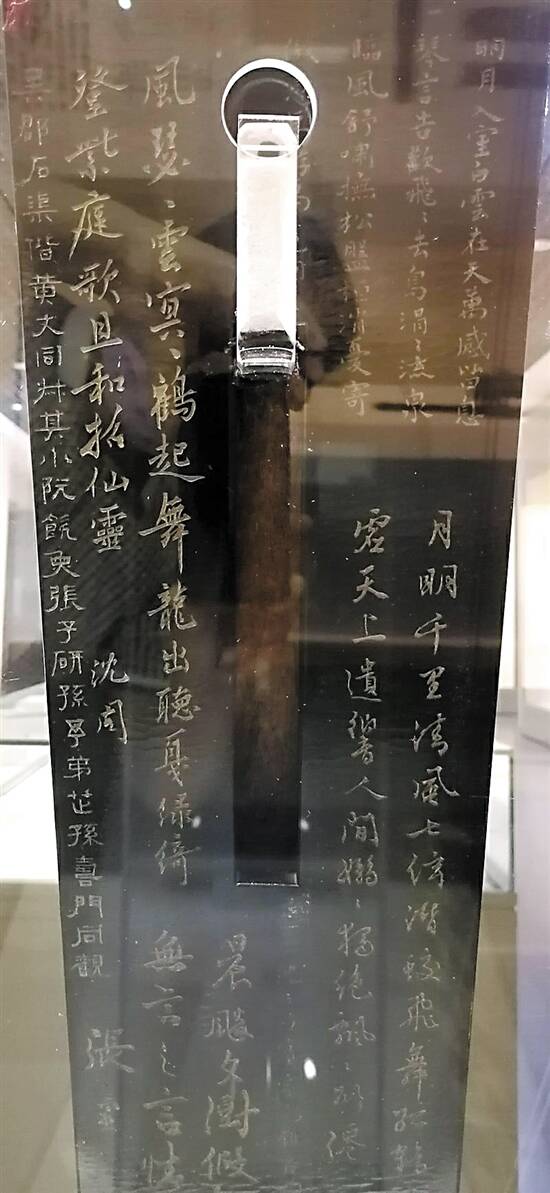 底板琴颈右侧“松石间意”4个大字是明朝书画家唐伯虎(唐寅)所题,落款是“吴趋唐寅”。除苏东坡、唐伯虎外,上面还有明清著名书画家祝允明、文徵明、沈周、文彭、王宠、石渠、陈庭鹭等10人的题刻。古人喜欢在自己用过的琴上题刻,这说明,这把古琴曾被上述12位历史名人弹过。
