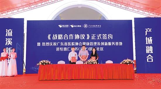 活动现场,珠江教医集团同步公布了与广东省医院协会的《战略合作协议》,“广东省医院协会健康管理及创新服务基地”于当天正式落户惠仁康养国际社区。珠江教医集团表示,未来将与权威医疗单位开展深度合作、交叉共赢,促进产城融合,发展全生命周期健康产业服务链条,细化到高端医养体系、产学研科技创新体系、建立医学人才梯队等多个层次的合作愿景。
