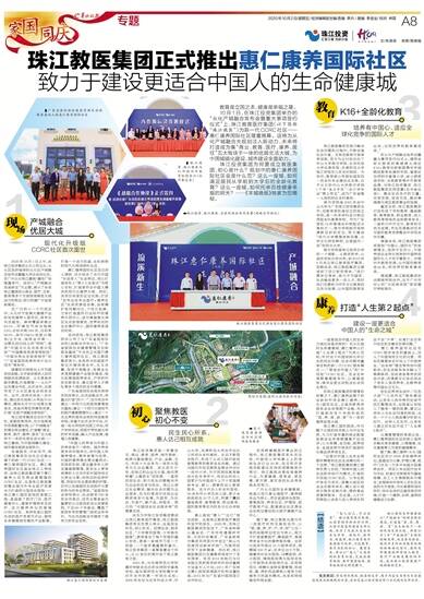 恰逢国庆、中秋双节,珠江教医集团在当天正式推出旗下的新一代CCRC社区——惠仁康养国际社区。惠仁康养国际社区是由珠江人寿投资,由珠江教医集团旗下惠仁康养公司负责运营管理的CCRC社区,也是珠江教医集团整合国内外专业医疗资源合力打造的大型综合医院——珠江惠仁国际医院的首期工程,是涵盖了医疗门诊、医疗康复中心、康复护理病床及协护、活力康养床位的高端CCRC社区。其特色是以国际先进的医疗资源为平台,借助生命健康城完善的产业配套,打造一个活力旺盛、生机勃勃的现代化持续照料社区。