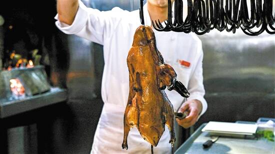 清同治三年(1864年),做活鸡活鸭生意的杨全仁盘下做干果生意的德聚全,改行做烤鸭,他们用果木作为燃料,用明火烤代替炭火烤,果木的香味进到烤鸭中,味道清香,备受追捧。做干果生意的找果木容易得很,招牌嘛,费事想了,倒过来就是,德聚全变“全聚德”。