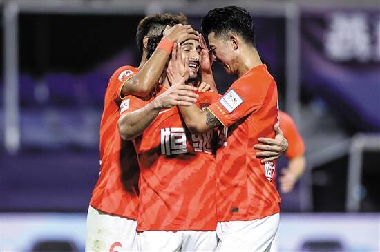 本赛季,卫冕冠军广州恒大表现依旧强势。图为恒大球员在进球后庆祝 新华社 发