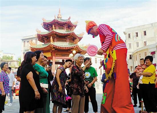 在活动现场,除了精彩不断的主舞台是“人气王”外,还有浓郁汕头文化特征的洋楼、非遗大师作品展演、让人垂涎三尺的特色美食、精心打造的主题文化墙、网红雕塑等也是游客必去的“打卡点”。此外,还有潮剧、杂技、舞狮、民乐、街舞等丰富的民俗表演,市民游客还可以亲自参与体验的潮玩文创项目、高跷小丑、魔术、泡泡秀等互动活动。