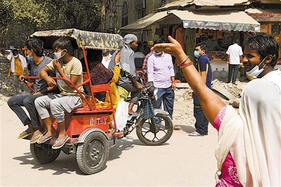 10月11日,新德里街头,民众戴口罩出行 图/人民视觉