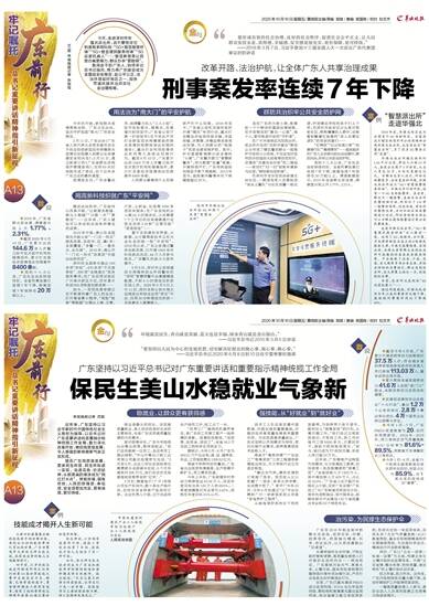 ●党的十八大以来,广东社会治安持续向好。全省刑事发案已连续7年下降,破案连续7年保持在20万起以上。
