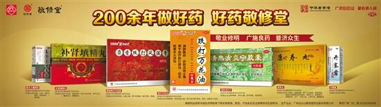 作为广东省非物质文化遗产,敬修堂传统中药文化在代代敬修堂人的传承发展下,闪烁出独特的光芒,其中,跌打万花油、麝香跌打风湿膏、追风透骨丸、化痔栓等代表着敬修堂传统中药文化精髓的经典产品,奠定了敬修堂在风湿跌打药物领域的行业地位。