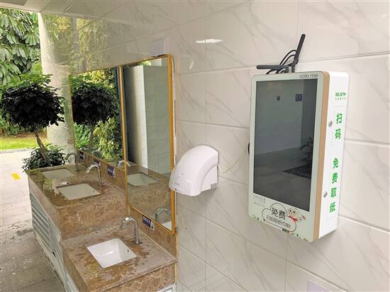 21日,记者在越秀区海印桥底公厕看到,多台带有显示屏的纸巾机已在公厕内安装。如厕者用手机扫描纸巾机上的二维码后,手机屏幕会弹出一个带有商业广告,并问询扫码者是否需要厕纸的页面。当扫码者点击确认需要厕纸后,纸巾机便会吐出一段70-100厘米的纸巾供如厕者免费领取。市城市管理和综合执法局在答复函中透露,自今年3月起,一共有36台这样的纸巾机,安装在越秀、荔湾、黄埔等区共18座环卫公厕。上述公厕向如厕者免费提供的纸巾,大部分由纸巾机运营方提供;纸巾机运营方通过扫码者手机上弹出的商业广告和纸巾机自带屏幕播放的商业广告获得收益。经过大半年试点,城管部门发现此举不仅降低了厕纸采购成本,还因如厕者需要手机扫码才能获得厕纸,而降低免费厕纸被滥领滥用的概率。为照顾老人小孩等不使用智能手机的如厕者的权益,如厕者依然可以从上述18座公厕的管理员处获得免费厕纸。市城市管理和综合执法局计划在全市环卫公厕中推广应用类似的纸巾机。
