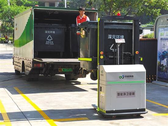 羊城晚报讯 记者李天军报道:10月26日是广东第27个环卫工人节,当天,一台智能环卫机器人亮相深圳市罗湖区长岭村地埋式垃圾站,为环卫工人“减负”。深圳成为国内首个将机器人用于垃圾转运站搬运的城市。