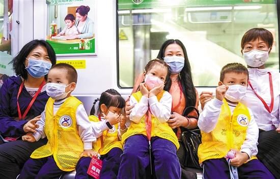 28日,在深圳地铁8号线上,市民在地铁正式开通前体验乘车 新华社发