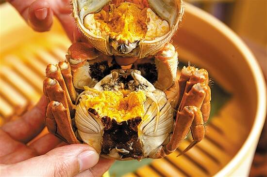 “一盘蟹,顶桌菜。”成隆行负责人杨富琅介绍,大闸蟹属于高蛋白食物,老少皆宜,其富含的蟹红素、钙、铁等100多种微量元素都能为人体补充营养。同时,大闸蟹作为杂食动物,在湖中,水草、虾、鱼等都能作为其食物来源,所以大闸蟹的鲜味也是一种复合型的香味。“正因为大闸蟹的营养价值过高,所以并不是人人都适合吃。”杨富琅补充道,“‘三高’人群切忌吃蟹;蟹性寒,孕妇也不适合吃。”