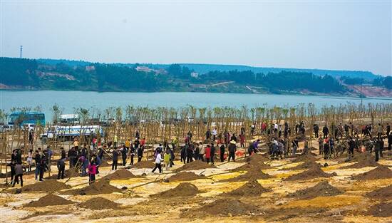 茂名人民在露天矿区种树