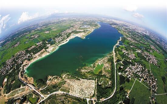 随后几年,引水、种树、建馆、修路……经过多年建设,当年满目疮痍的废弃矿坑,渐渐变成了游客来到茂名必去打卡的“马尔代夫”,还取了一个相当醒目的名字:好心湖。享受国务院特殊津贴专家、茂名市政协副厅级干部章宁介绍,通过修建引水渠,把高州水库的水经由鉴江水系引进露天矿深坑,形成一个东西长6公里、南北最宽1.5公里的大湖,“其水面面积比杭州西湖还要大,蓄水量达到1.6亿立方米,是杭州西湖的10多倍。”目前,露天矿生态公园共种了8000多亩的树木,以前裸露、荒芜的土地都绿了;湖区和周边已修了四十多公里的道路,把整个环湖及周边的路网都打通了。“……莽伟力之神通兮,引鉴江之清流。诞溟瀛之矿坑兮,涵骊珠之岭南……”2017年,中国作协会员、著名作家熊育群为茂名露天矿生态公园作了一首《好心赋》,详述了公园的秀美和生态修复的成效。
