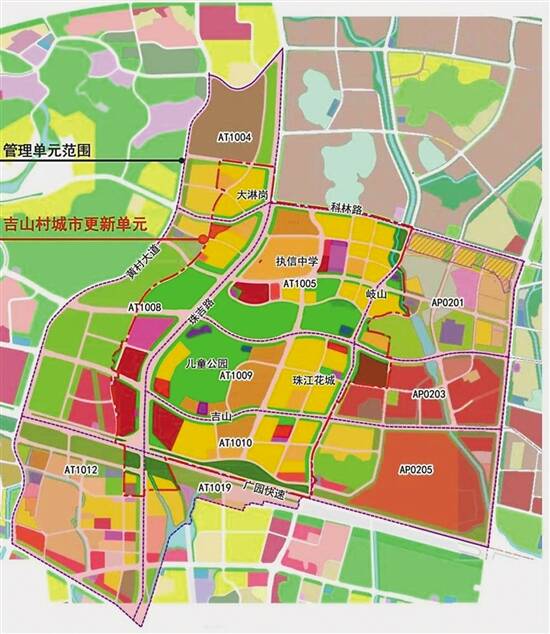 吉山村规划管理单元现行控规示意图 图/广州市规划和自然资源局