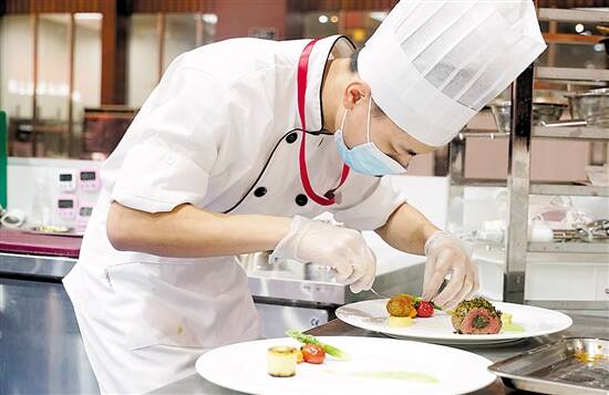 今年8月24日,第一届全国职业技能大赛(国赛精选)西式烹调项目广州市选拔赛上,选手正在进行比赛