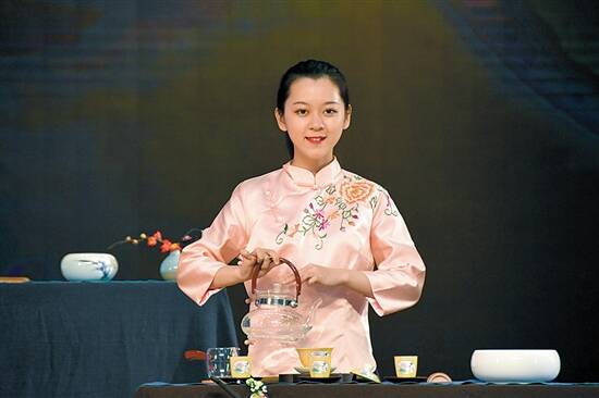 茶艺专业学生在茶艺表演中,气质高雅、技能娴熟,深受好评