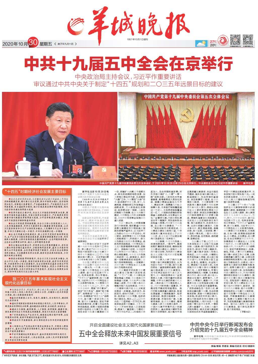 中共十九届五中全会在京举行