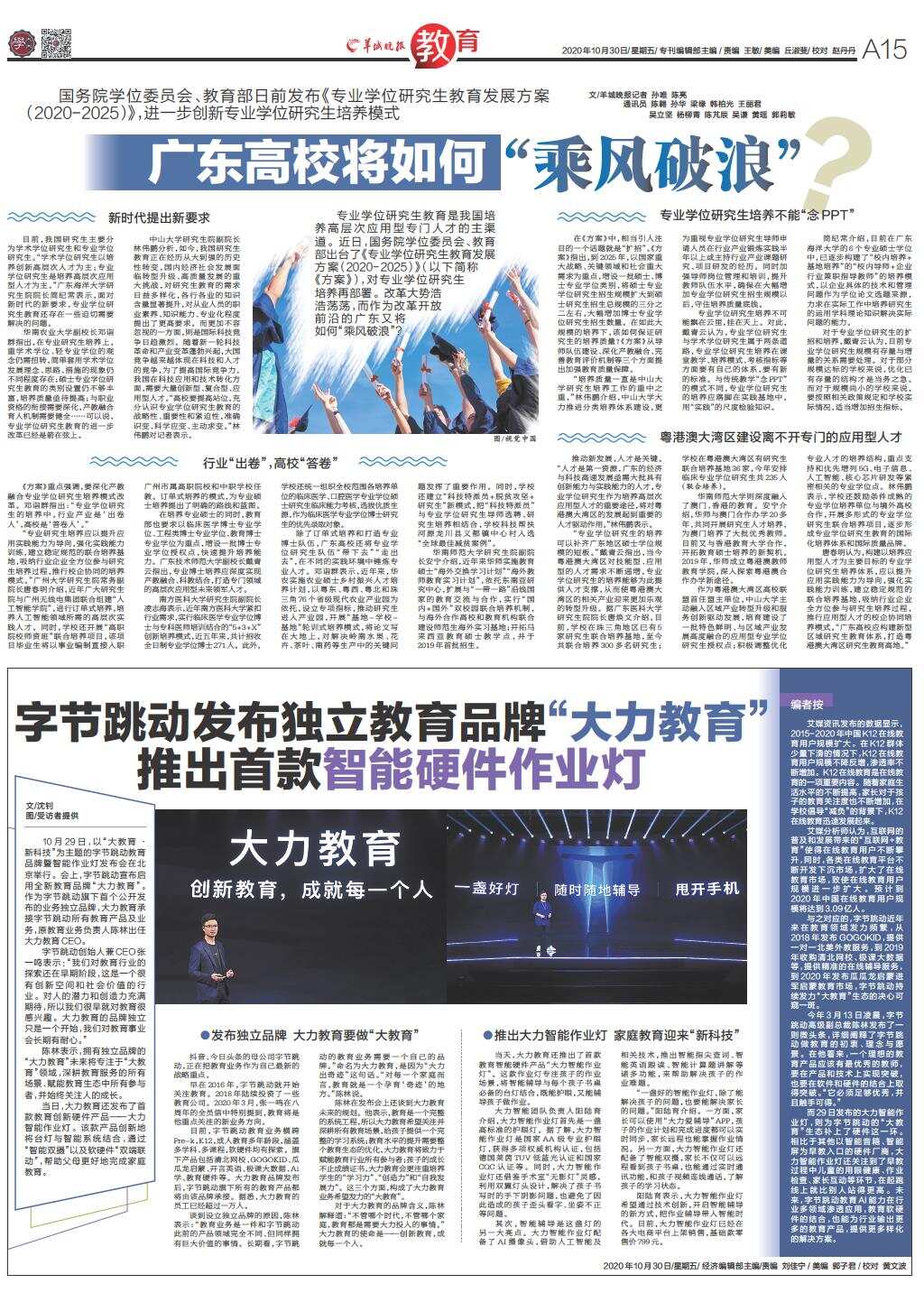 字节跳动发布独立教育品牌“大力教育” 推出首款智能硬件作业灯