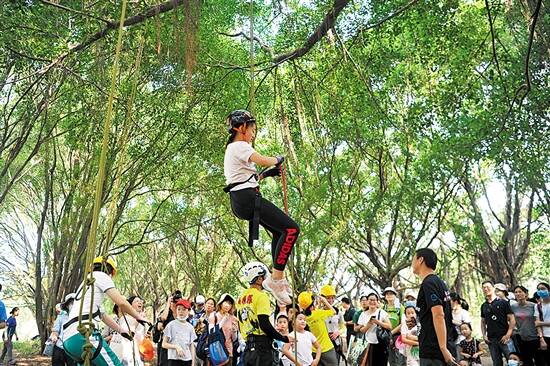 首届粤港澳自然教育季启动,孩子们在林中攀树体验