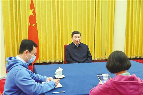 11月2日,中共中央总书记、国家主席、中央军委主席习近平在北京中南海参加第七次全国人口普查登记。这是习近平在回答普查员的询问 新华社发