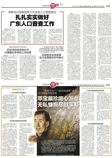 羊城晚报讯 按照《全国人口普查条例》规定,第七次全国人口普查从11月1日开始普查登记。11月2日,省委书记李希、省长马兴瑞分别在广州参加人口普查登记。