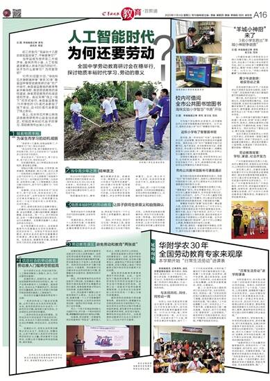 “省教研院正计划设置劳动教育教研员,将劳动作为一门学科来重视,进行研究、设计、开发,形成标准化、可复制的课程。”省教育研究院副院长李海东表示,“华附坚持学农30年,不断迭代提升,这是一个很好的素材,我们要组织专家开展教研,萃取优秀经验,在全省层面复制、推广。”