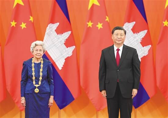 11月6日,国家主席习近平在北京人民大会堂为柬埔寨太后莫尼列举行中华人民共和国“友谊勋章”颁授仪式 新华社发