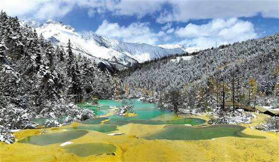 记者从四川当地旅游部门了解到,踏入秋冬季的四川,正迎来一年中的最佳出游季节——峨眉山早在10月已迎来2020年的第一场雪,日出雪景美出天际;金秋的九寨沟山林尽染,沟内九个古老藏族村寨以及石磨房、栈道、经幡、藏羌歌舞等展示着神秘的色彩;黄龙的秋季彩池、冰瀑雾凇在高原喀斯特地貌景观的映衬下,堪称大自然杰作;青城山—都江堰深秋银杏纷飞、温泉蒸腾,水文化、道教文化、古迹建筑、生物景观交相辉映……