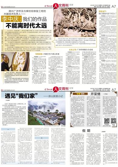 在展览间隙,羊城晚报记者采访了这位以“浙江手艺人”的身份入粤,又在“木雕之乡”潮州闯出一番天地的艺术家。李中庆认为,无论是哪个流派都不应故步自封,传统手工艺经过相互学习和吸收,推陈出新,方能达到“1+1>2”的效果。