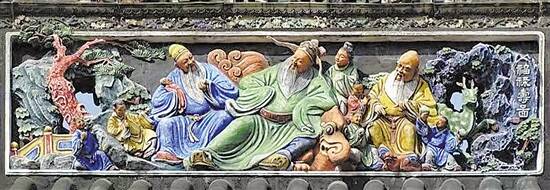 陈家祠头门上的灰塑《福禄寿图》