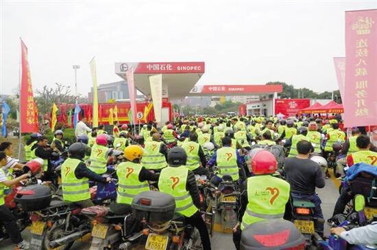 连续8年,广东石油开展“情暖驿站 满爱回家”公益活动,为返乡摩骑免费加油