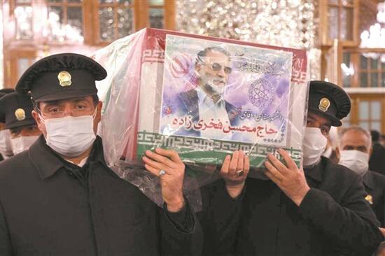 伊朗核物理学家法赫里扎德27日同样死于暗杀。他乘坐的小汽车在伊朗首都德黑兰附近行驶时遇袭,法赫里扎德伤重不治。伊斯兰革命卫队总司令、伊朗警察总司令等伊朗军方高层30日出席法赫里扎德的葬礼。国防部长阿米尔·哈塔米在葬礼期间说,法赫里扎德遇害令伊朗人“更团结、坚定”。“敌人知道……伊朗人不会对犯罪、恐怖和愚蠢举动置之不理。”