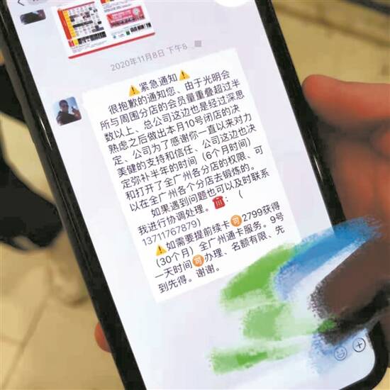 11月8日晚,胡女士突然收到了门店经理发来的消息,称门店将于11月10日整体搬迁,会员需要在此之前办理转卡手续。胡女士告诉记者:“当时在这里办卡很大程度是因为场馆的位置,现在搬迁的话,并不想转店。”