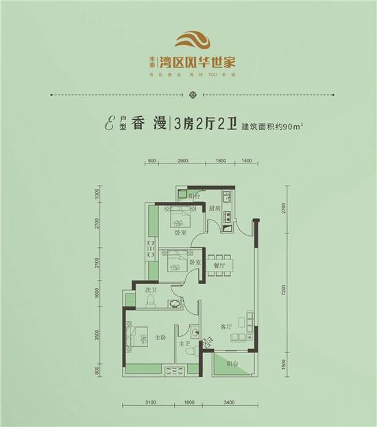 获奖理由:该户型属于东莞实用性较高的三房户型,三房两厅两卫设计,南北通透,夏有凉风冬有阳,明厨明卫、双阳台,是东莞少有的90平方米也能做到两个卫生间的优质产品。餐厅客厅相连,整个客餐厅有约7.2米乘3.4米宽阔空间,雍容大气,客厅连接宽景阳台,3000亩白马湖尽收眼底。