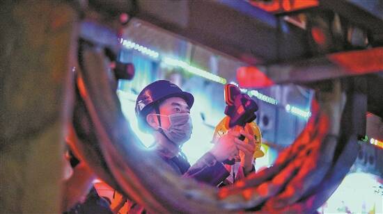 南方电网广东江门鹤山供电局对用电负荷较大的企业和商区开展测温夜巡,及时掌握线路设备运行情况 图/受访者提供