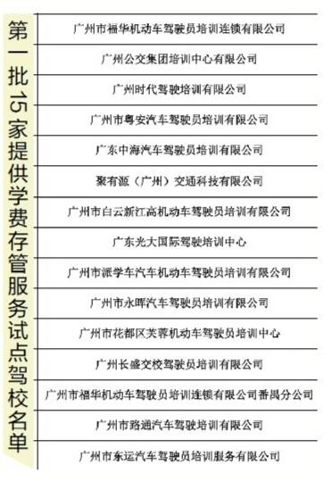 羊城晚报讯 记者严艺文、实习生王沫依、通讯员交通宣报道:广州市机动车驾驶培训学费第三方存管服务模式(以下简称“学费存管服务模式”)试点工作近日实施。据悉,学员在报名学车时,可自主选择“先学后付”,缴纳的部分学费将冻结在本人专门账户中,代由银行存管。待学员分科目考试合格后,逐次划拨至驾校。目前,该模式已在首批15家驾培企业试点。