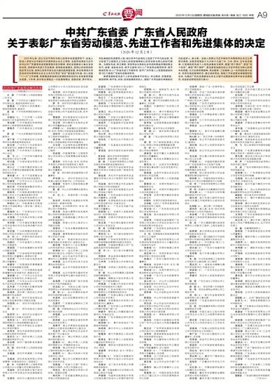 2015年以来,在以习近平同志为核心的党中央坚强领导下,全省人民深入贯彻习近平新时代中国特色社会主义思想,全面贯彻落实习近平总书记对广东重要讲话和重要指示批示精神,紧扣全面建成小康社会目标任务,坚持稳中求进工作总基调,坚持新发展理念,坚持以供给侧结构性改革为主线,坚持以改革开放为动力推动高质量发展,抓住粤港澳大湾区和深圳中国特色社会主义先行示范区“双区”建设重大机遇,深入实施“1+1+9”工作部署,统筹推进新冠肺炎疫情防控和经济社会发展取得重大成果。5年来,各行各业涌现出一大批爱岗敬业、锐意创新、勇于担当、无私奉献的先进模范人物,他们在平凡的岗位上创造了不平凡的业绩,充分彰显了以爱国主义为核心的民族精神和以改革创新为核心的时代精神。为表彰先进,树立典型,营造劳动光荣的社会风尚和精益求精的敬业风气,省委、省政府决定,授予王建等363人广东省劳动模范称号,授予杨旭东等36人广东省先进工作者称号,授予广州市第八人民医院感染科等100个集体广东省先进集体称号。