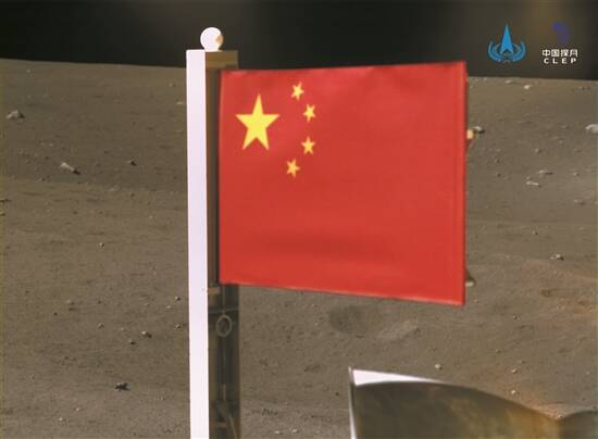 据新华社电 经过科研团队的数据接收和处理,4日下午,国家航天局公布了探月工程嫦娥五号探测器在月球表面国旗展示的照片。这是继嫦娥三号、四号任务后,五星红旗又一次展现在月球表面,同时也是五星红旗第一次月表动态展示。