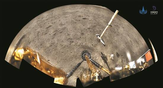 嫦娥五号着陆器和上升器组合体全景相机环拍成像,五星红旗在月面成功展开 新华社发