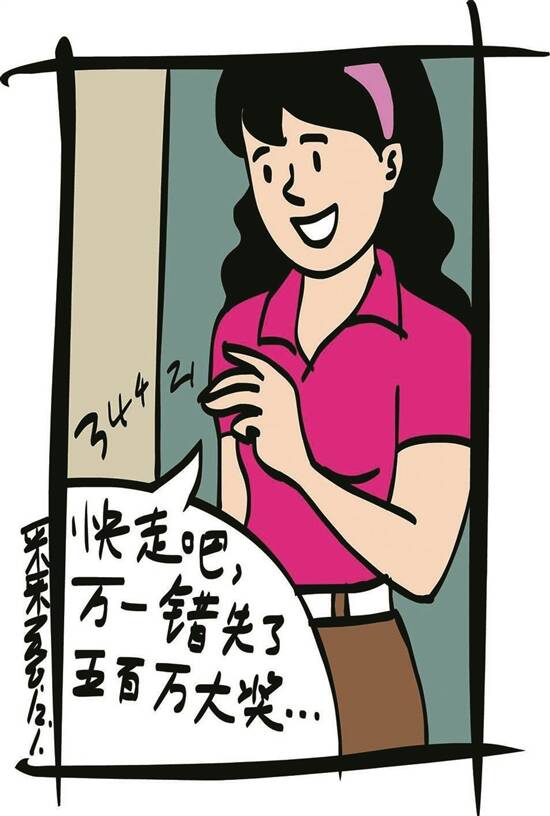 一阵敲门声把胡思乱想的徐军拉回了现实,门外果然站着刘馨,冲着他呵呵一笑说:“快走吧,万一错失了五百万大奖,你要不后悔就是神仙了。”(袁斗成)