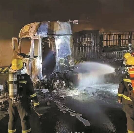 据介绍,消防救援人员到达现场后,隧道内已经浓烟滚滚,随即他们采取应急措施,设置路障,封闭双向道路。由于拖挂车不是运载易燃易爆危险品,消防救援人员用水枪直击着火部位,很快将火势扑灭。记者从报料人提供的图片来看,该车已烧剩一副铁架。目前,事故已经基本处理完毕,往佛山顺德方向已经解封,往黄埔大桥方向解封一条车道。据悉,事故中没有造成人员伤亡。目前,相关善后还在处理当中。