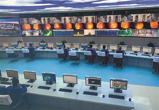 广州市第三资源热力电厂,工作人员监控垃圾焚烧发电过程