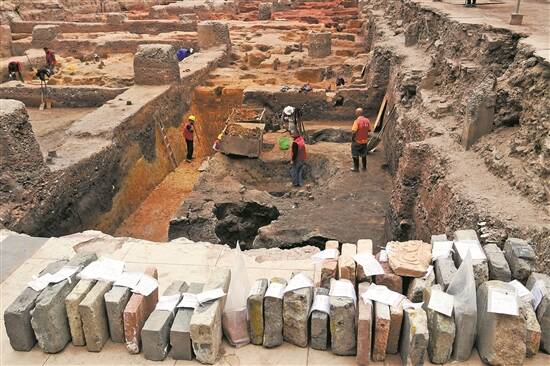 本次考古发掘工作,共发现并清理了汉代至民国时期遗迹432处,其中灰坑155个、方池36处、井28眼、房址1处、台基1座、护坡1个、沟13条、墙14段、磉墩52个。