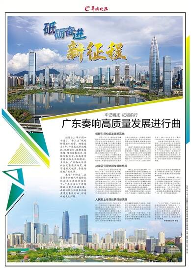 展望“十四五”,在习近平新时代中国特色社会主义思想的指引下,广东全省上下将继续凝心聚力共谋发展,在新征程上持续奏响高质量发展进行曲,创造新的更大辉煌。