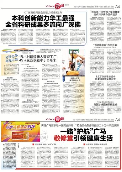 羊城晚报讯 记者张闻、通讯员陈雅静报道:12月12日,在广东高校科技成果转化大会上,由广东高校科技成果转化中心发布的《广东高校科技创新能力报告》(下简称《报告》)正式出炉。根据《报告》,华南理工大学与深圳职业技术学院分别在本科、专科院校创新能力方面排名第一。此外,全省科研成果项目转化收入服务前三强分别是广州、深圳、佛山。
