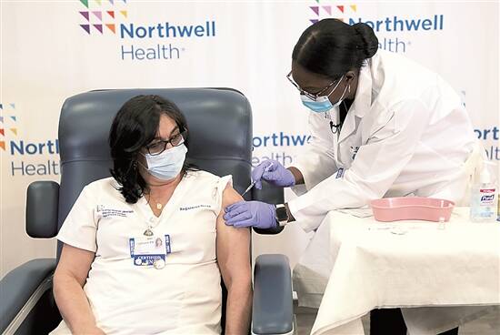 当天上午,纽约长岛犹太医疗中心重症监护室护士桑德拉·琳赛最先接种了疫苗,成为纽约州首名疫苗接种者,也是全美首批疫苗接种者之一。