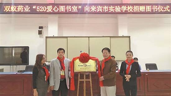 近日,“双蚁药业520爱心图书室”捐赠仪式在广西来宾市实验学校举行,广西双蚁药业有限公司(以下简称双蚁药业)积极响应团中央和国家新闻出版部门的号召,关心孩子成长,构建多彩精神家园,向广西来宾市实验学校等10所中小学校捐赠20万码洋图书。