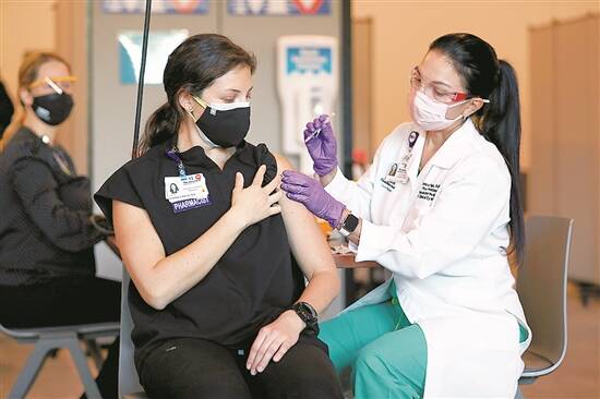 美国佛罗里达州一医务人员接种新冠疫苗 图/人民视觉