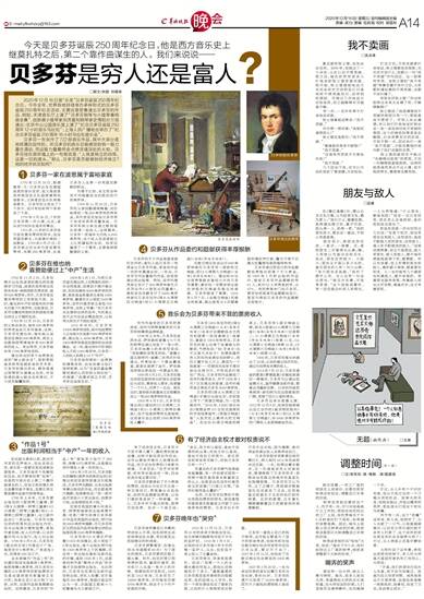 贝多芬虽然靠自己辛勤的劳动收入不菲,但他却把生活安排得杂乱无章,有时甚至出现捉襟见肘的局面。