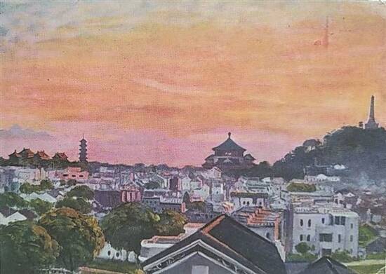 东风路的标志性建筑中山纪念堂以及附近的中山纪念碑(图为民国年间风景明信片)