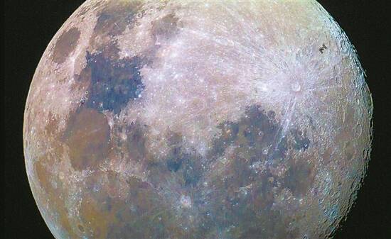 2015年7月公布的一张国际空间站“飞跃”月球正面的精彩图片,是由业余摄影师迪兰-奥唐乃尔从澳大利亚地域拍摄到的。图片右上角能清楚地看到空间站的轮廓