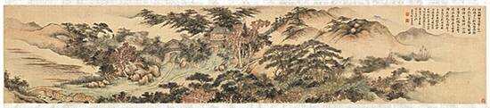 《听涛楼图》作于清道光七年丁亥(1827年),其时鸦片战争尚未爆发,图卷给后人留下了清帝国升平时代的风雅光景。据长卷上文字所载,听涛楼所在的区域位于今天的广州海珠区万松园内,当时文人官员雅集之时,可听见海幢寺钟声。
